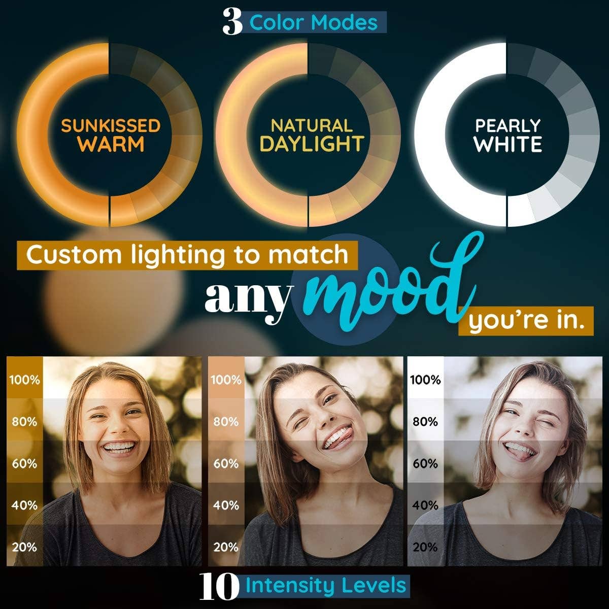 LIGHTING MODE: Customize your next photo shoot or video conference lighting. With 3 different lighting modes and 10 different brightness settings, Instagram and TikTok filters are a thing of the past!
