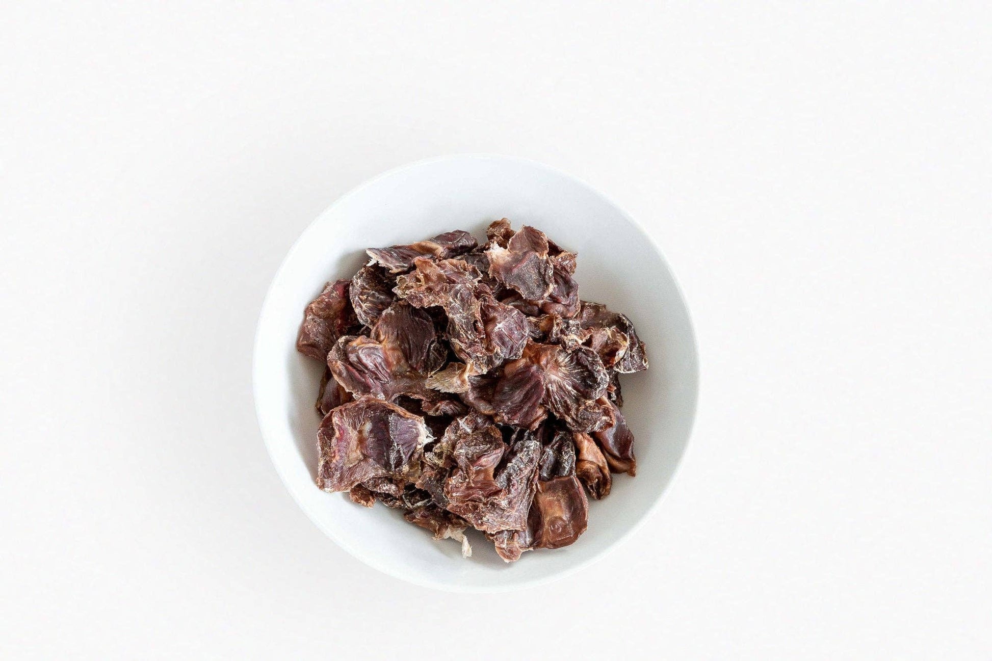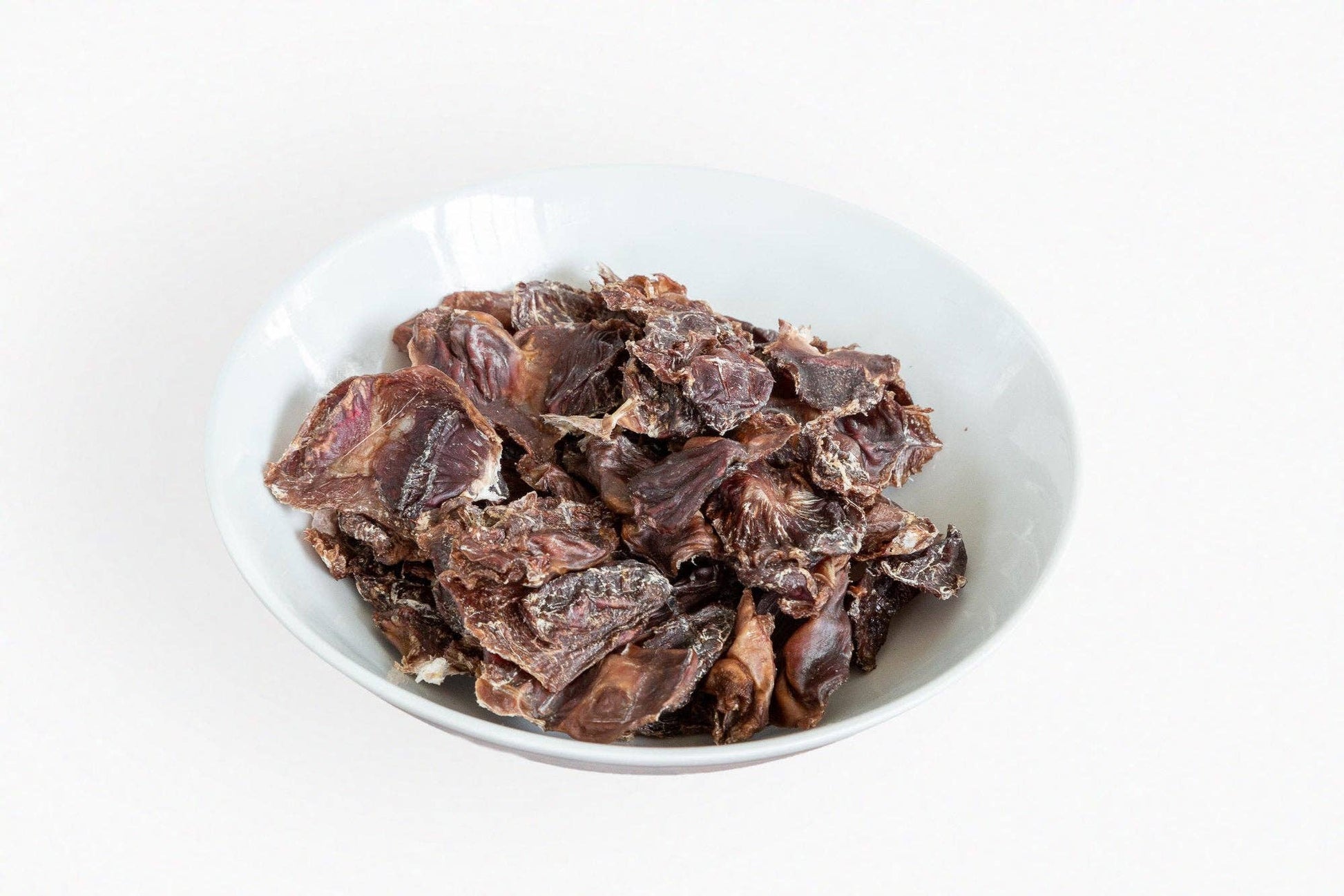 Chicken Gizzards are organs made up of muscle meat and connective tissues. They are low in fat but high in protein, vitamin B-12, iron, and zinc, making them an excellent choice to add to your pet's food. In addition, they are the perfect size to use as high-reward training treats.