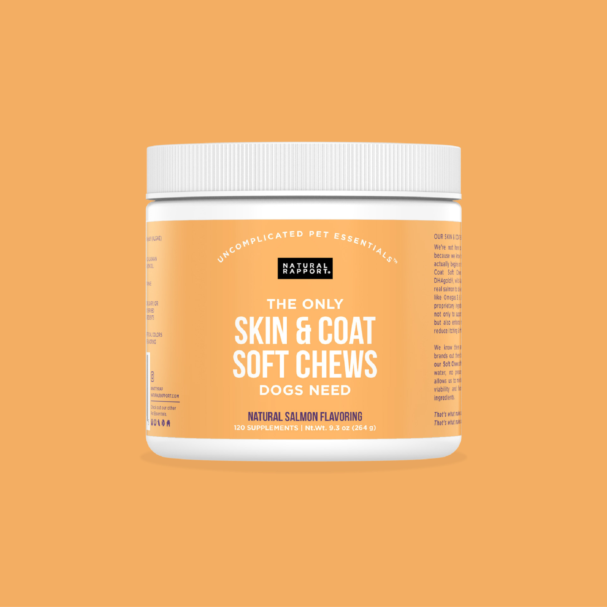 We’re not here to sugar your coat – because we know true skin & fur health actually begins on the inside. Our Skin & Coat Soft Chews are packed with DHAgold, wild Alaskan salmon oil, and real salmon to deliver top notch nutrients like Omegas 3, 6, & 9 as well as other proprietary ingredients that are known not only to support skin & coat health, but also enhance immune function and reduce itching & inflammation.